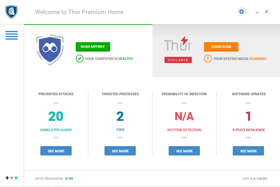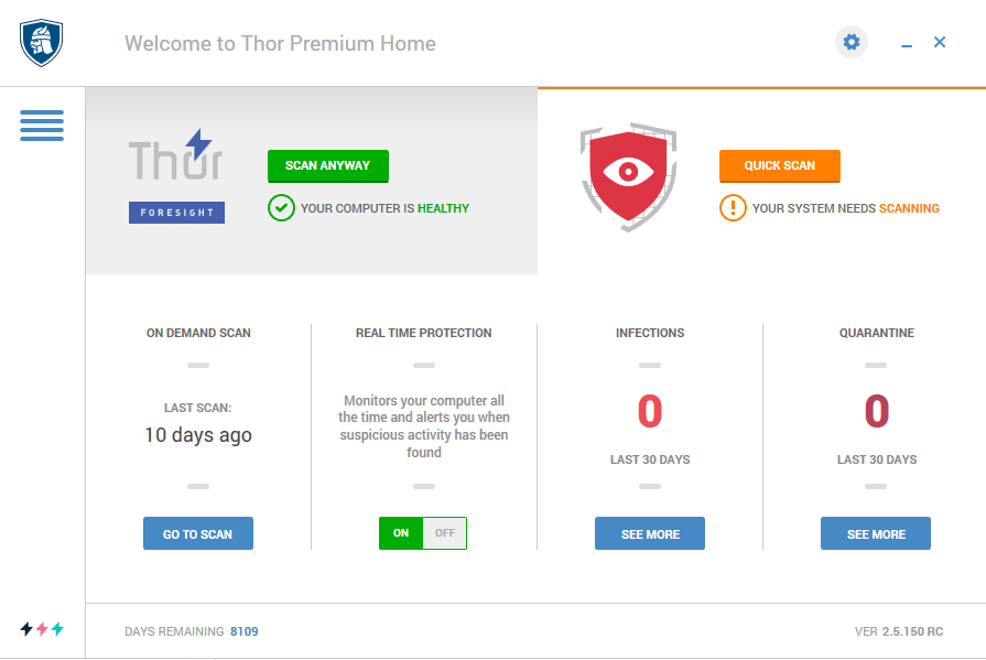 Les utilisateurs comptent principalement sur l’antivirus comme seule couche de sécurité, mais avec les dernières cybermenaces telles que le cryptage des ransomwares, les antivirus traditionnels ne suffisent tout simplement pas. Alors que le moteur antivirus intervient après une infection (réactive), vous avez également besoin d'une solution de sécurité proactive pour éviter d'être infecté. Même si notre recommandation est d'utiliser la solution Thor Premium complète, vous pouvez toujours utiliser Thor Foresight seul, avec un autre antivirus. C'est un puissant bouclier contre les ransomwares, les logiciels malveillants et autres menaces.